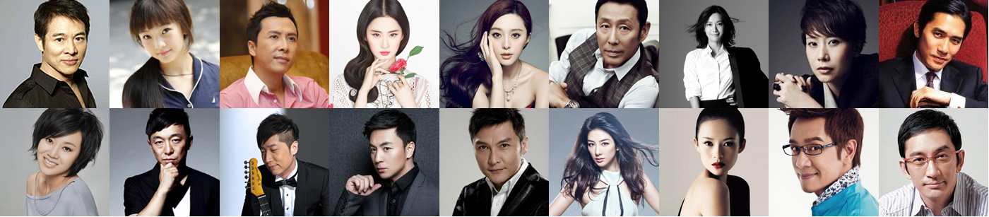 李连杰、林妙可、甄子丹、张艺兴、陈道明、杨丽萍、鹿晗、海清、杨洋、徐静蕾、蒋雯丽、陈建斌、蒋勤勤、张丰毅、梁朝伟、刘嘉玲、许晴、章子怡、周星驰、 甄子丹、徐帆、梅婷、闫妮、陈坤、唐国强、小沈阳、陈庭威、孙红雷、李冰冰、李小璐、刘德华、黄奕、陈伟霆、罗志祥、孙淳、杜淳、于文文、王力宏 、刘仪伟、袁泉、夏雨、梁家辉、唐国强、巫启贤、高菲、黄渤、钟丽缇、马浚伟、舒淇 、温碧霞、释小龙、关礼杰、宋祖儿、吴启华、魏俊杰、张钧甯 、杨思琦、李修贤、陈浩明、刘亦菲、于荣光、胡歌、王凯、刘涛、井柏然、赵丽颖、任达华、苗侨伟、黎耀祥、王小利、汤镇宗、汤镇业、刘锡明、马德钟、欧锦棠、苏有朋、温兆伦、洪欣、蔡少芬、杨幂、郭可盈、邓紫棋、张家辉、丁海峰、赵雅芝、关芝琳、黄日华、张兆辉、陶大宇、张嘉译、李念、陈百祥、叶璇、何政军、张馨予、王子文、杨幂、郭碧婷、郭采洁、余文乐、郑恺、杨颖、彭于晏、迪丽热巴、古力娜扎、张艺兴、明道、陈乔恩、张卫健等等。我们致力打造主流明星,全力培养商业市场高辨识度艺人。 为企业客户实现市场利益最大化,提供准确,高效的品牌代言服务。